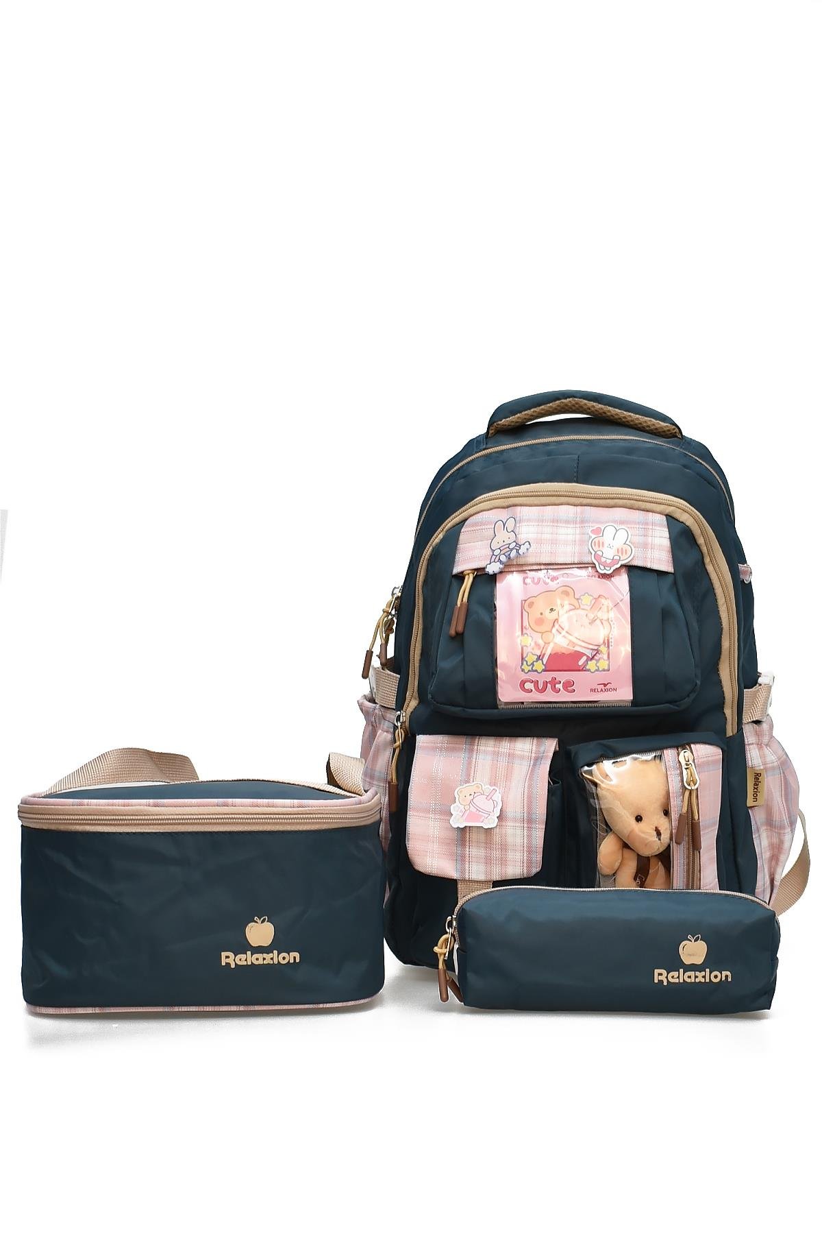 Elatae 3'lü İlkokul Çantası Seti Okul Çantası & Termal Beslenme Çantası & Kalemlik Lacivert 1395 (Elatae-Okul-Çantası-1395-15)