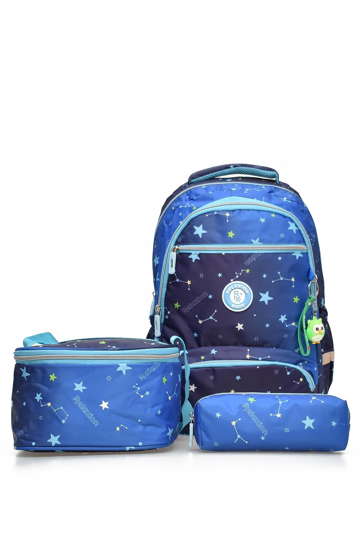 Elatae 3'lü İlkokul Çantası Seti Okul Çantası & Termal Beslenme Çantası & Kalemlik Lacivert-Mavi 1385 (Elatae-Okul-Çantası-1385-17)