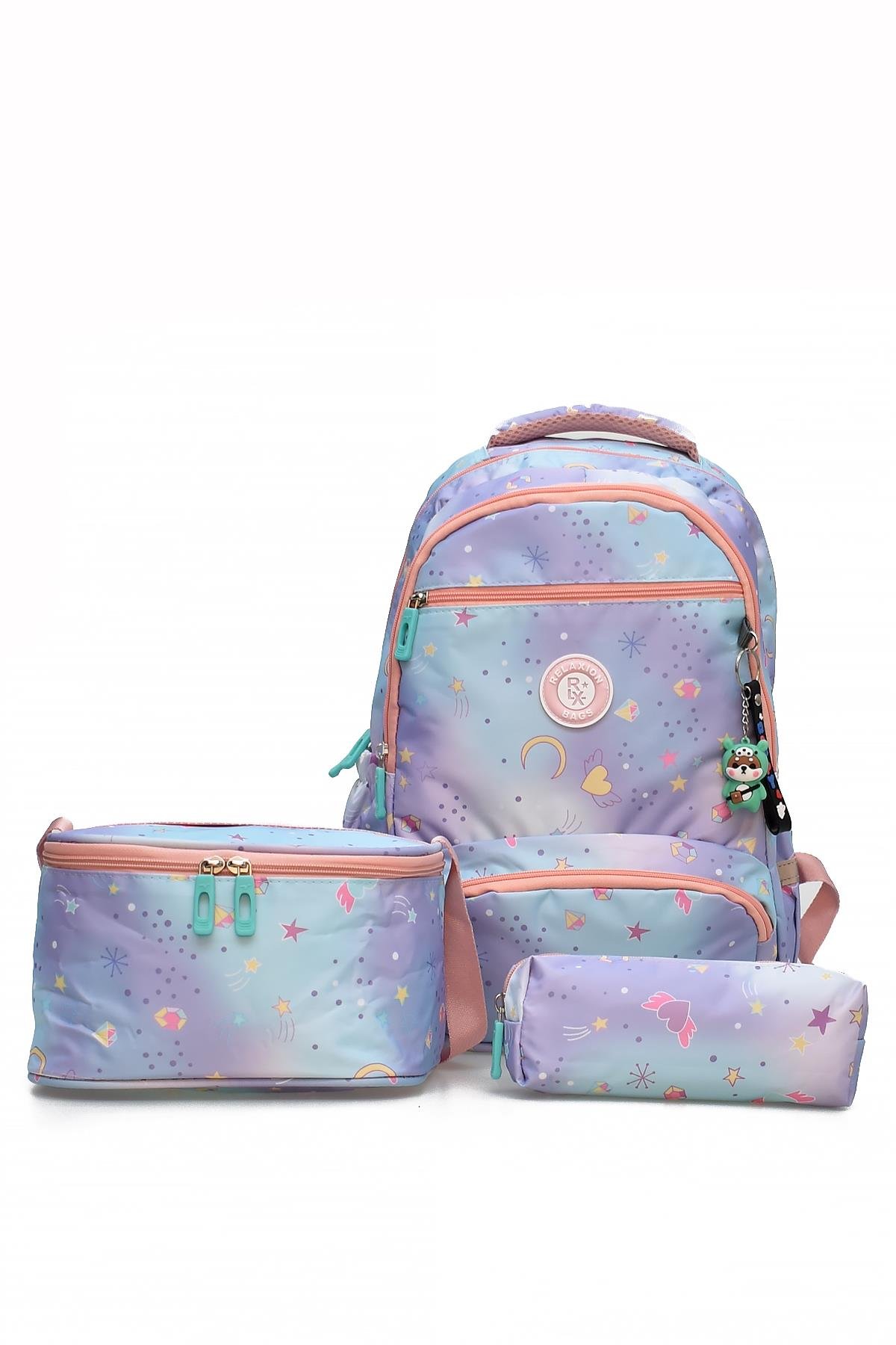 Elatae 3'lü İlkokul Çantası Seti Okul Çantası & Termal Beslenme Çantası & Kalemlik Lila-Mavi 1385 (Elatae-Okul-Çantası-1385-18)