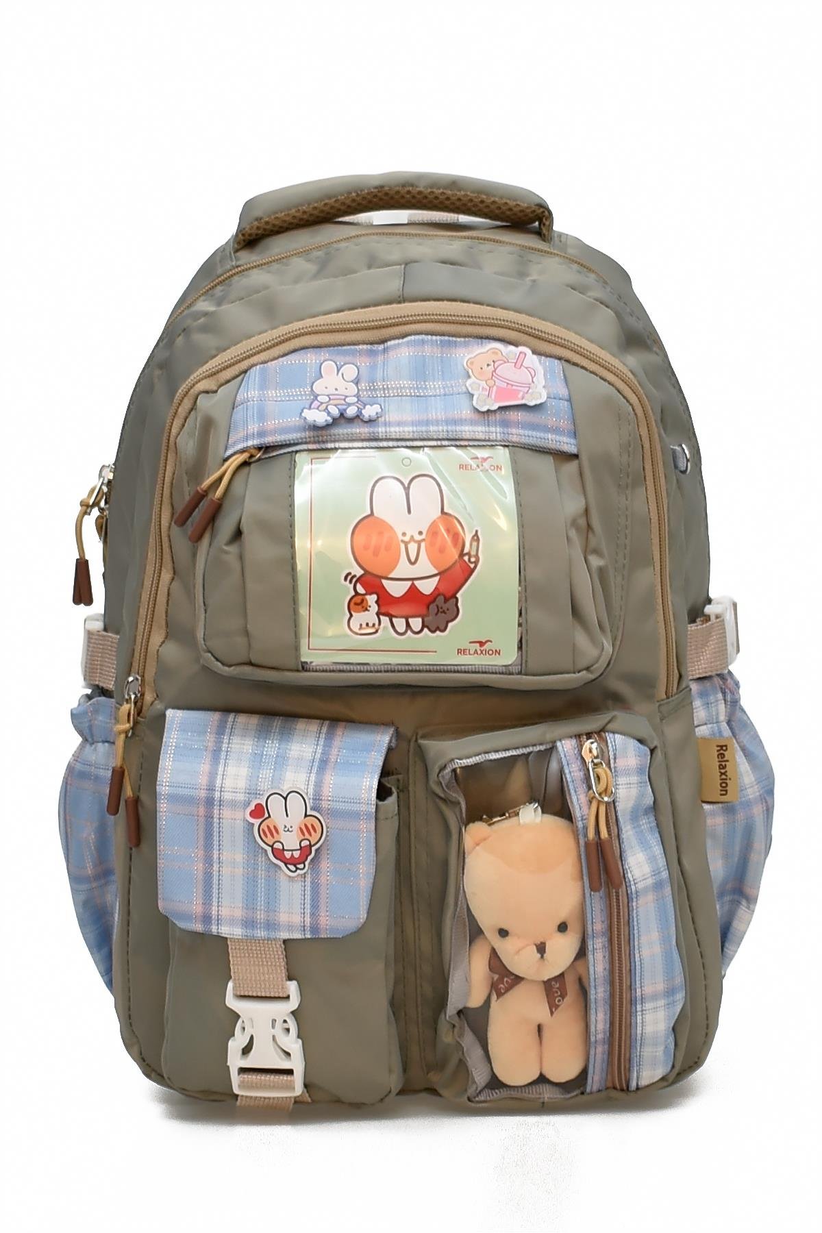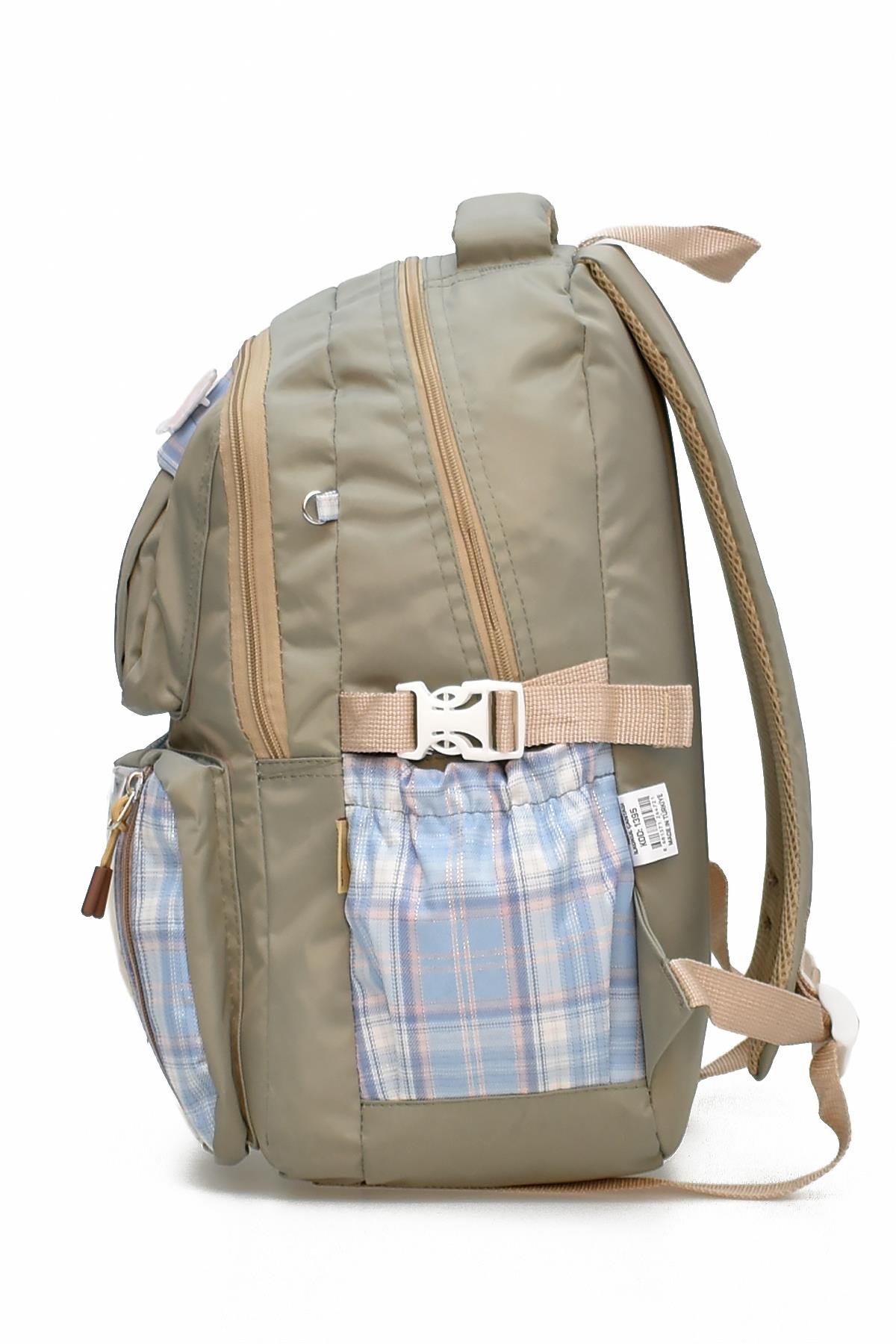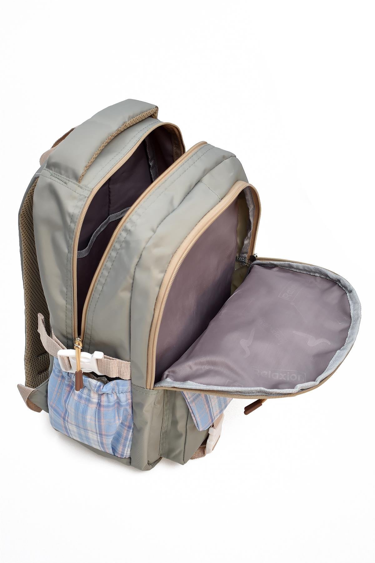 Çantanın yan kısımlarında 2 adet esnek malzemeden suluk ve aksesuar cebi bulunmaktadır.
