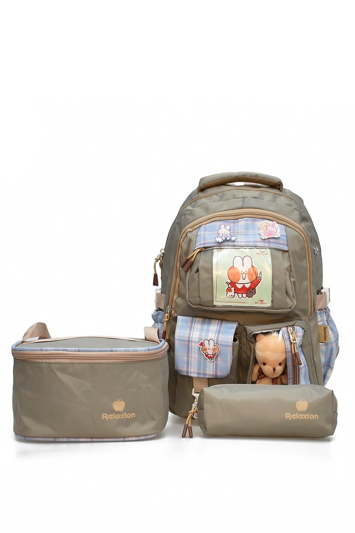 Elatae 3'lü İlkokul Çantası Seti Okul Çantası & Termal Beslenme Çantası & Kalemlik Yeşil 1395 (Elatae-Okul-Çantası-1395-20)