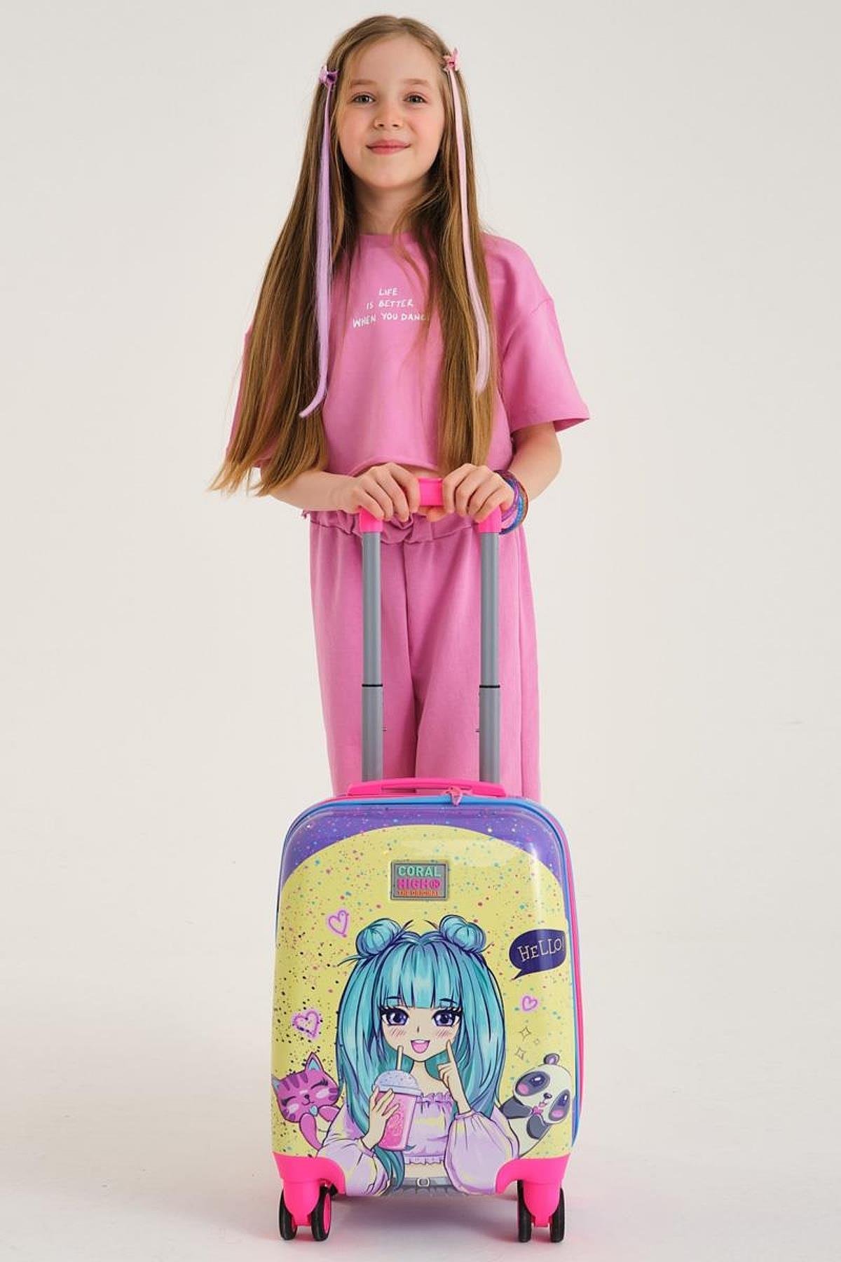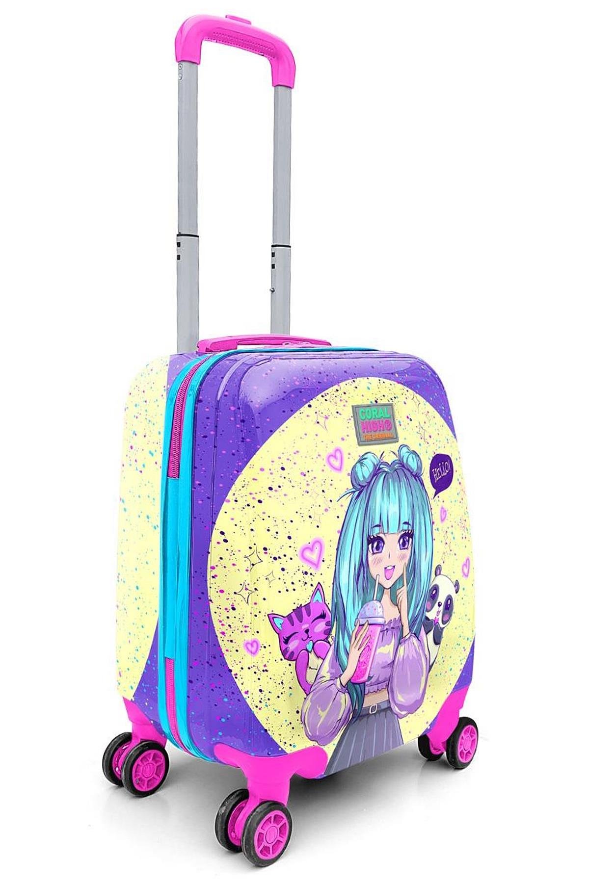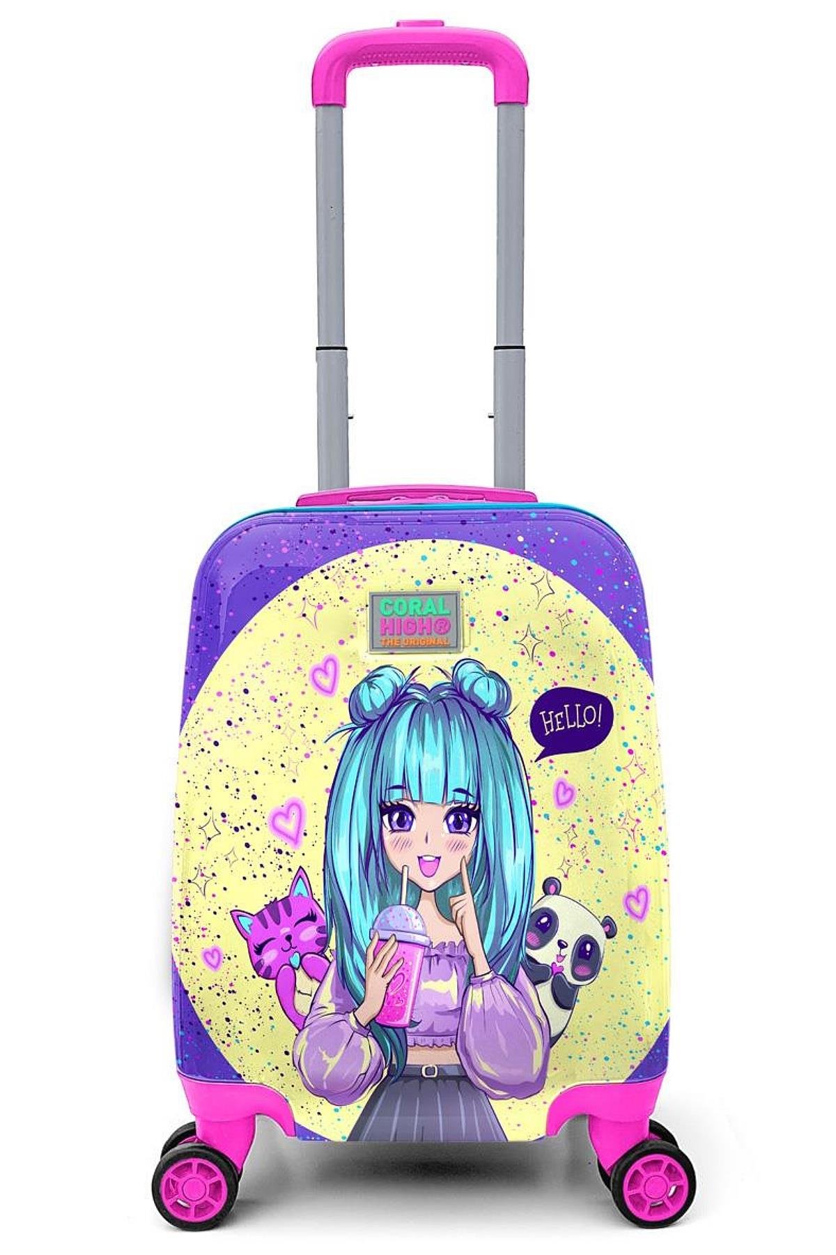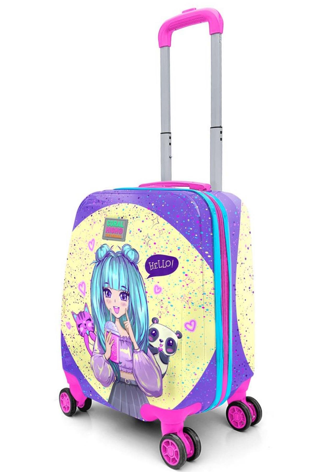 Elatae 4 Tekerlekli Policarbon Kırılmaz Çocuk Valizi Lila Anime Kız Desenli (Elatae-Çocuk-Valiz-16705)