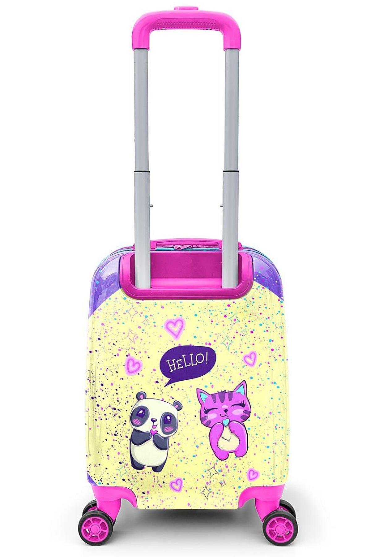 Elatae 4 Tekerlekli Policarbon Kırılmaz Çocuk Valizi Lila Anime Kız Desenli