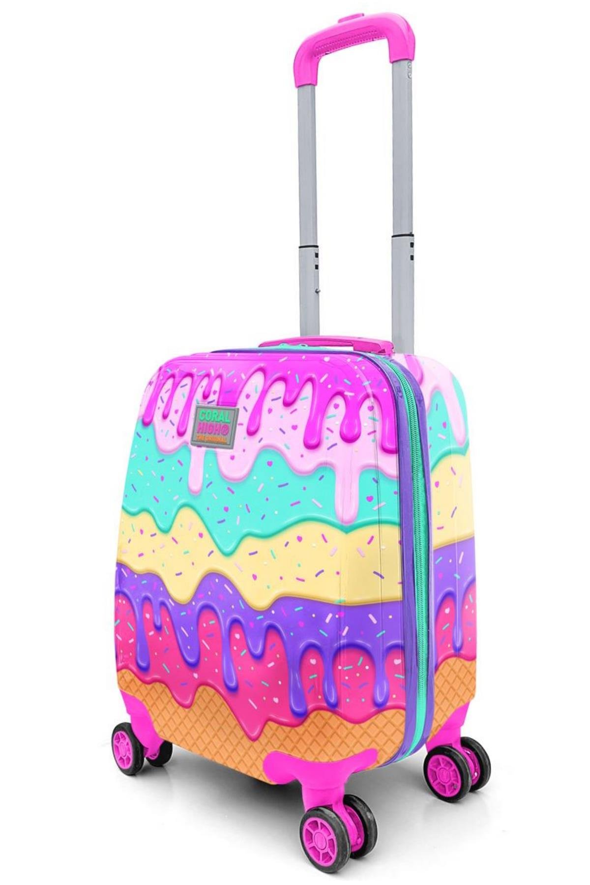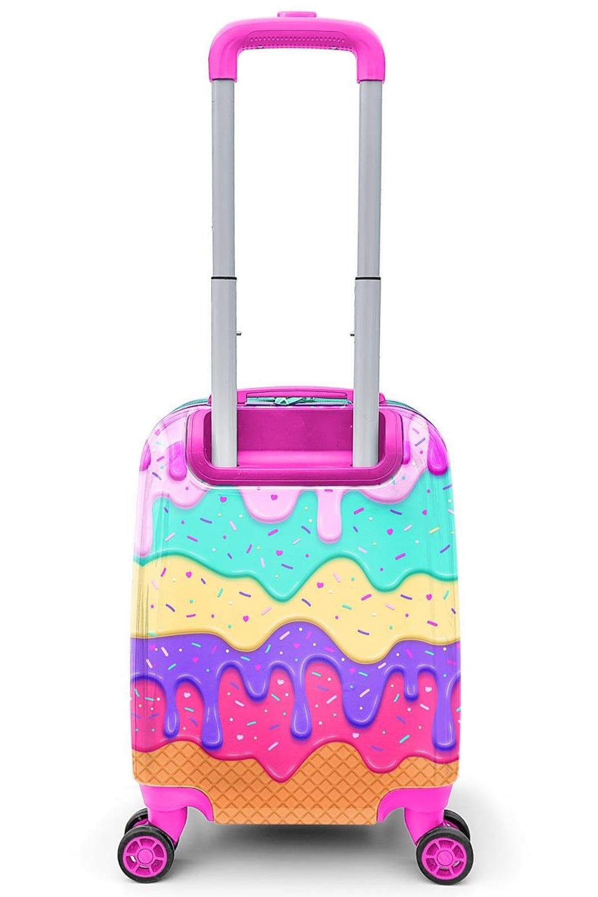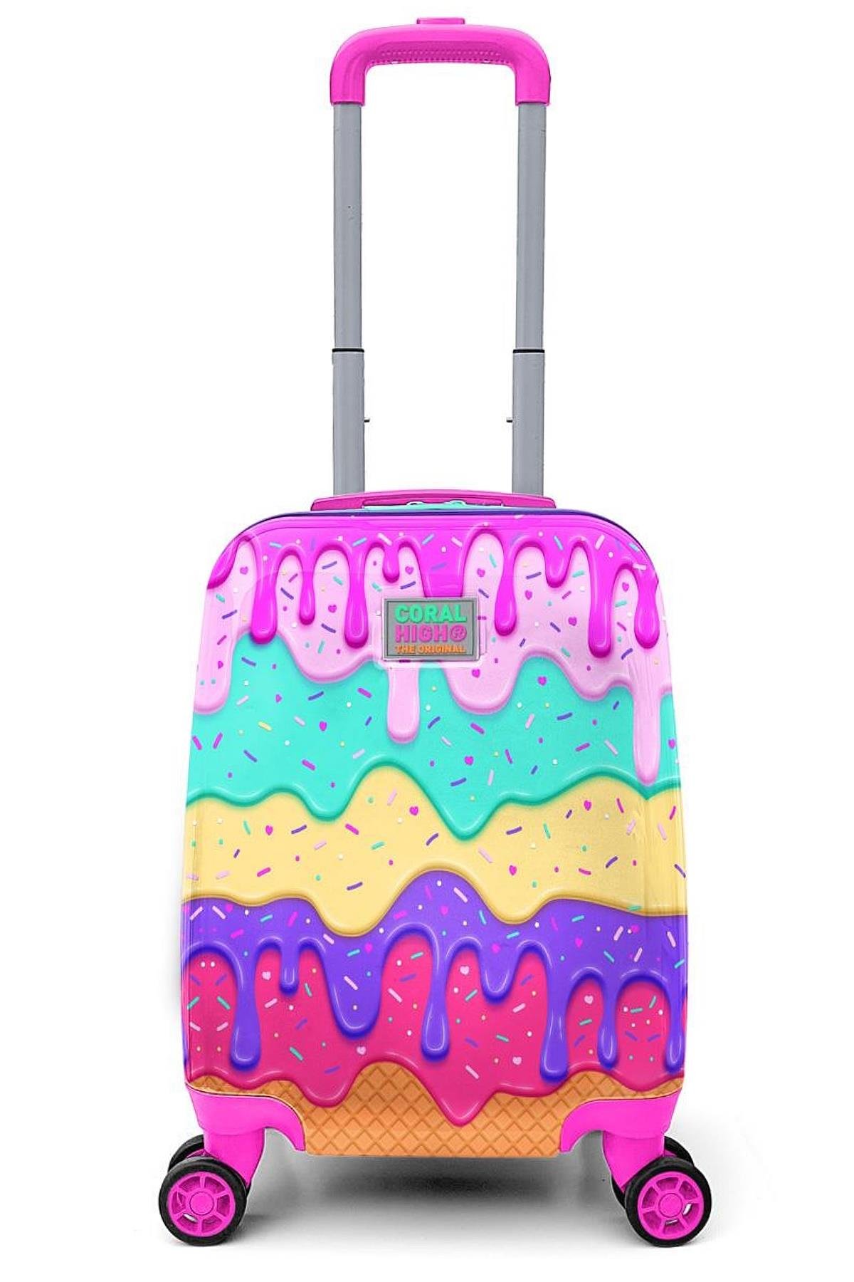 Elatae 4 Tekerlekli Policarbon Kırılmaz Çocuk Valizi Pembe Rengarenk Dondurma Desenli (Elatae-Çocuk-Valiz-16703)