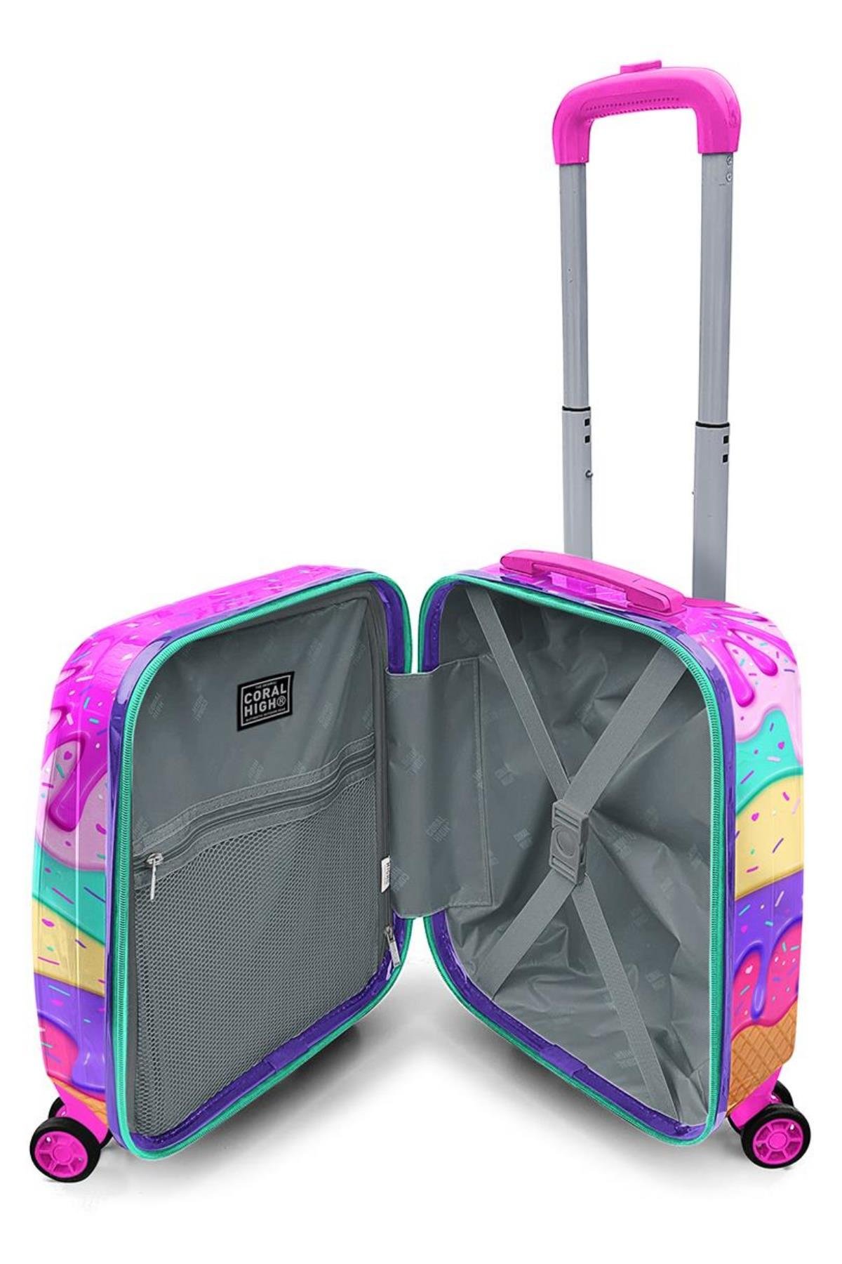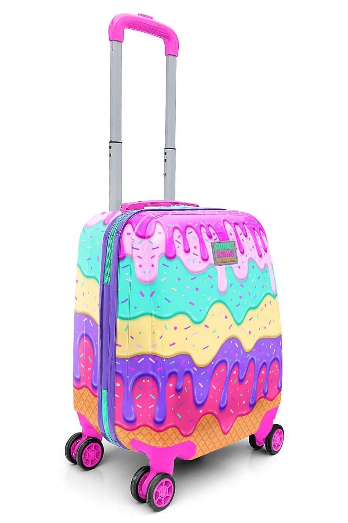 Elatae 4 Tekerlekli Policarbon Kırılmaz Çocuk Valizi Pembe Rengarenk Dondurma Desenli