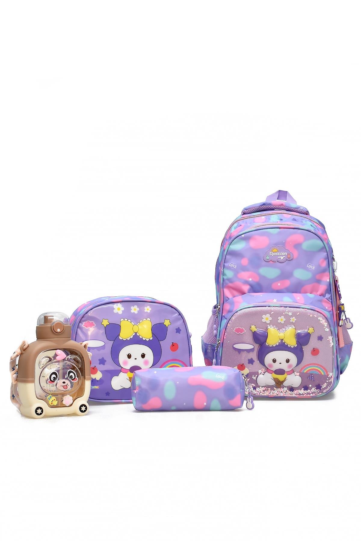 Elatae 4'lü İlkokul Çantası Seti Okul Çantası & Termal Beslenme Çantası & Kalemlik & Suluk Lila 1370 (Elatae-Okul-Çantası-1370-07)