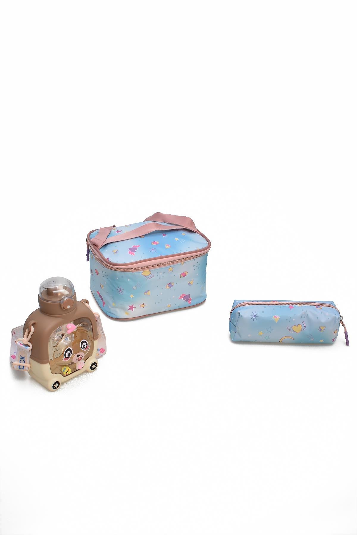 Elatae 4'lü İlkokul Çantası Seti Okul Çantası & Termal Beslenme Çantası & Kalemlik & Suluk Mavi-Pembe 1390
