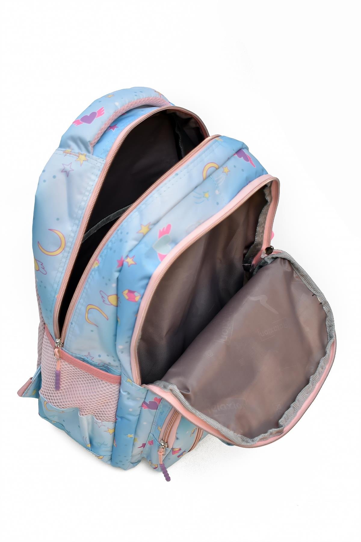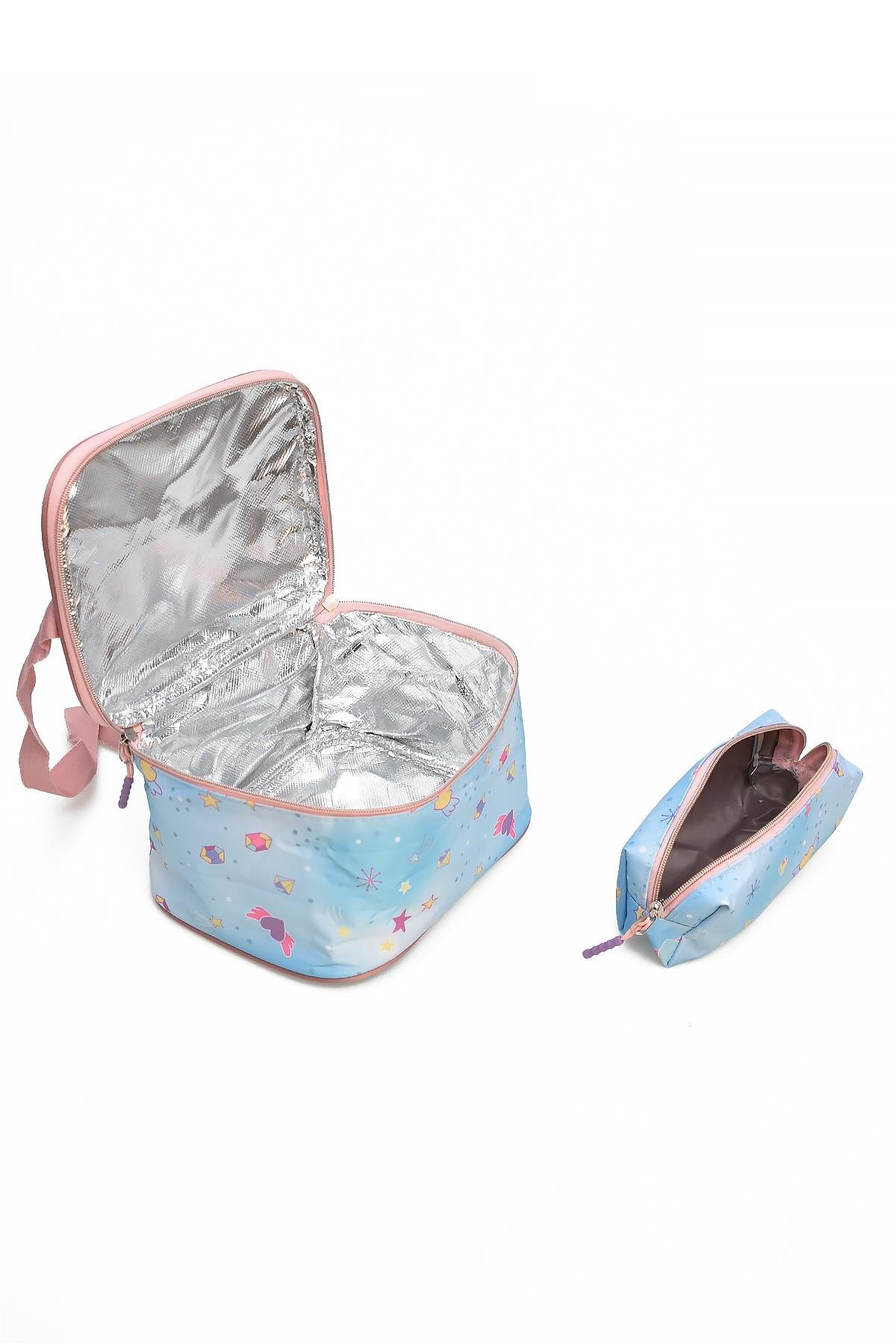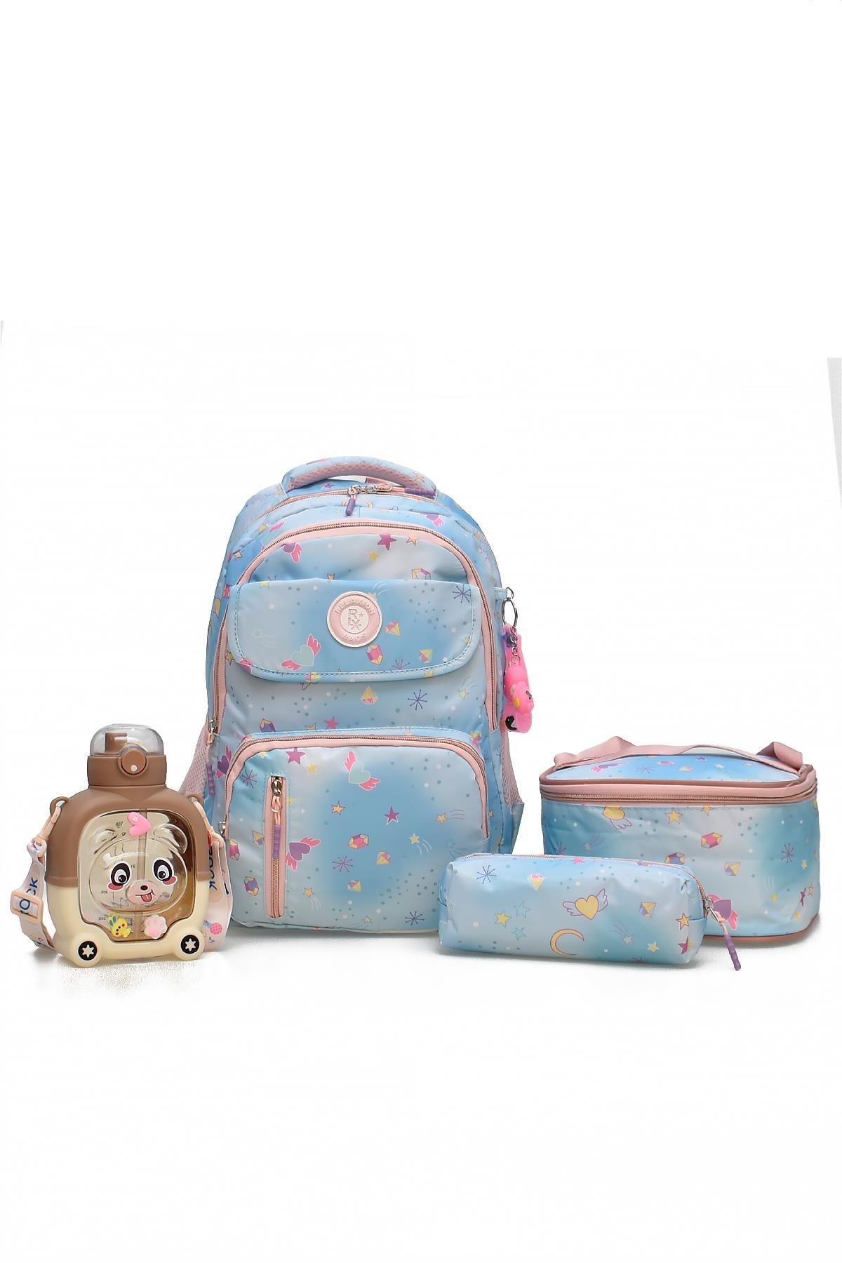 Elatae 4'lü İlkokul Çantası Seti Okul Çantası & Termal Beslenme Çantası & Kalemlik & Suluk Mavi-Pembe 1390 (Elatae-Okul-Çantası-1390-10)