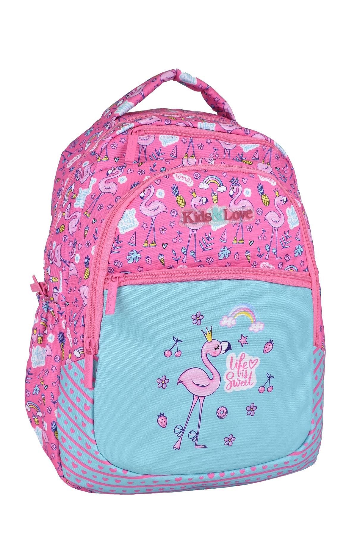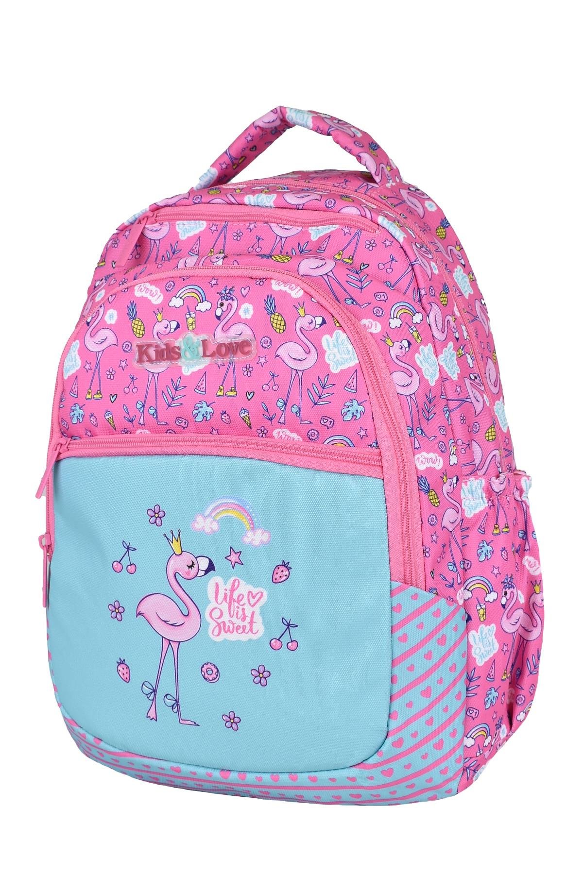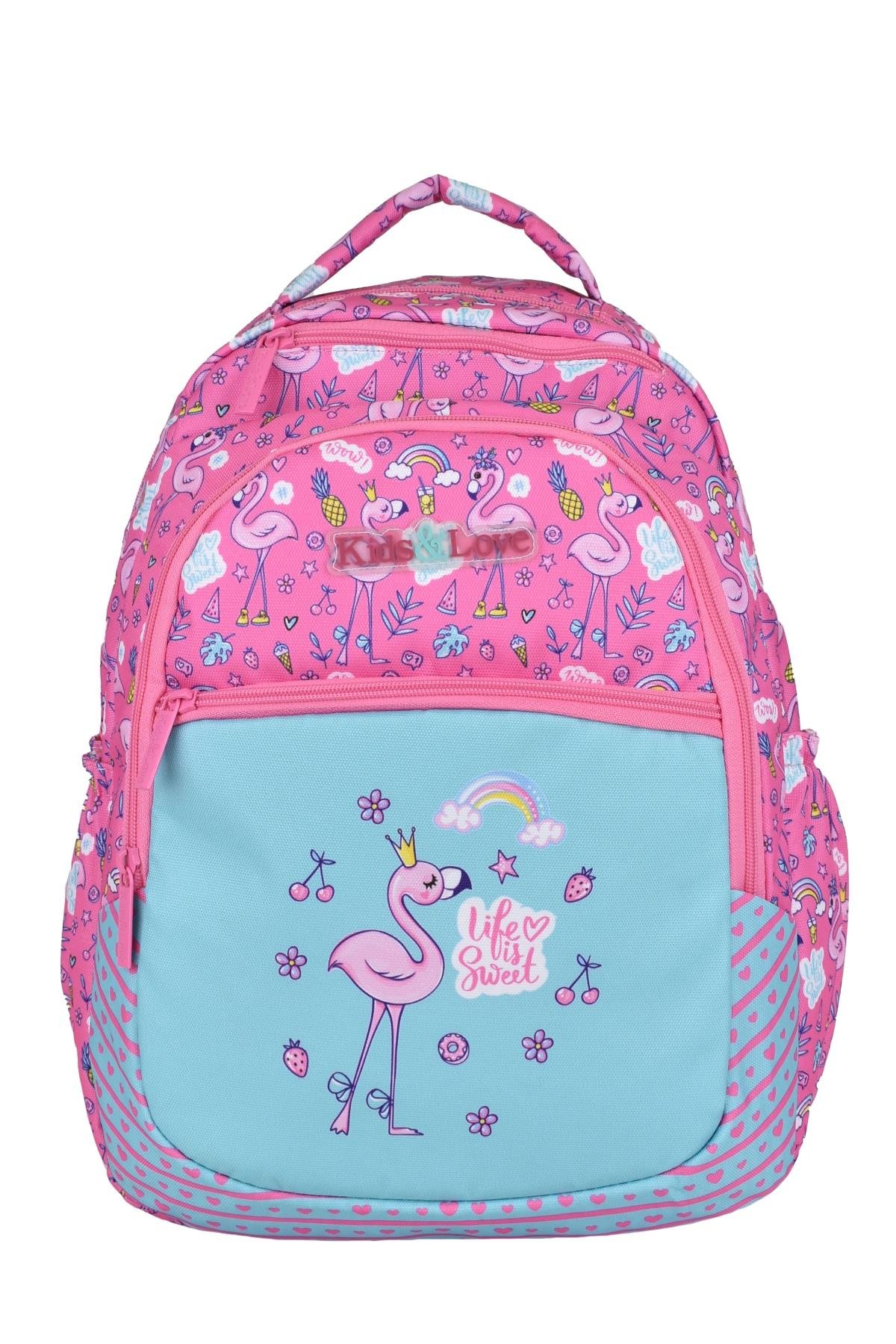 Elatae Çok Gözlü Su Geçirmez Nano Kumaş Flamingo Desenli İlkokul Çantası L5107