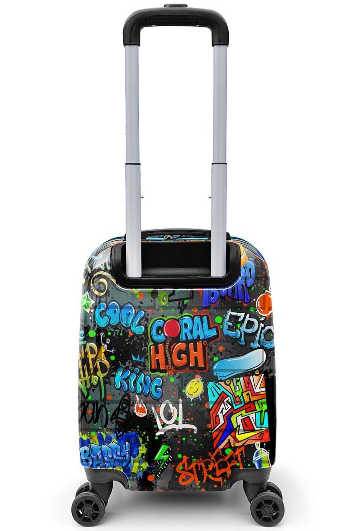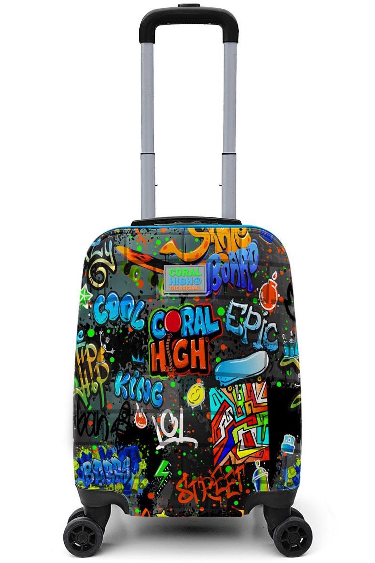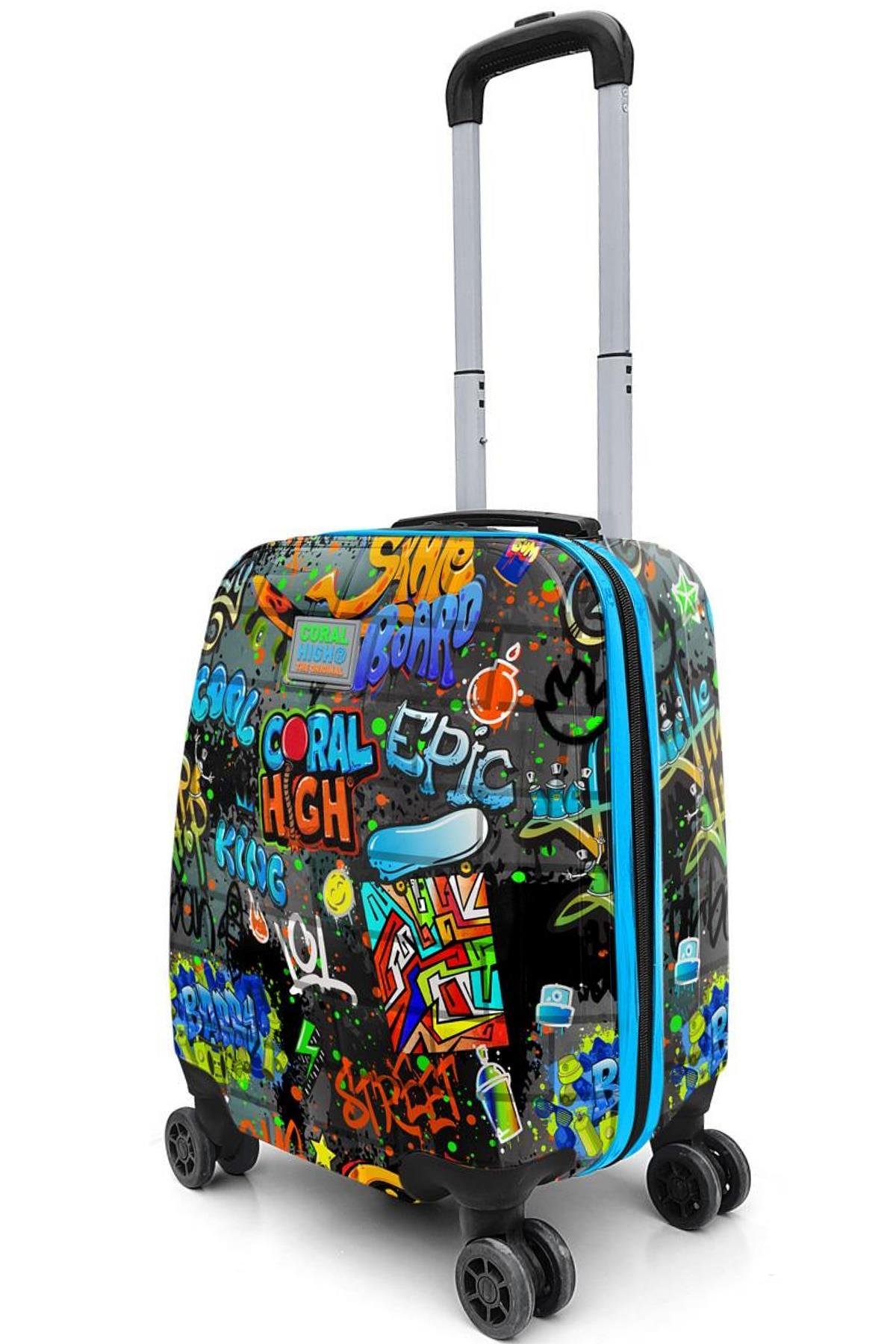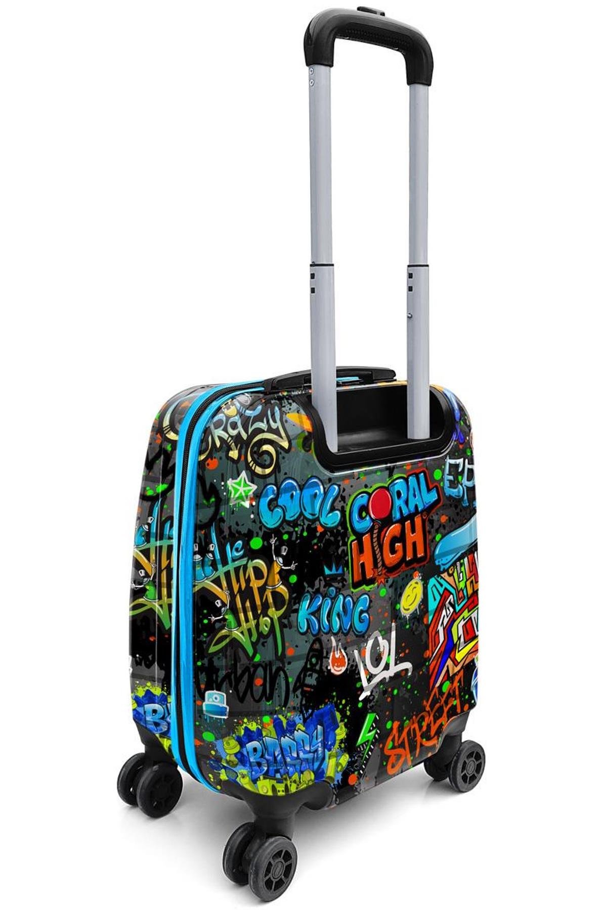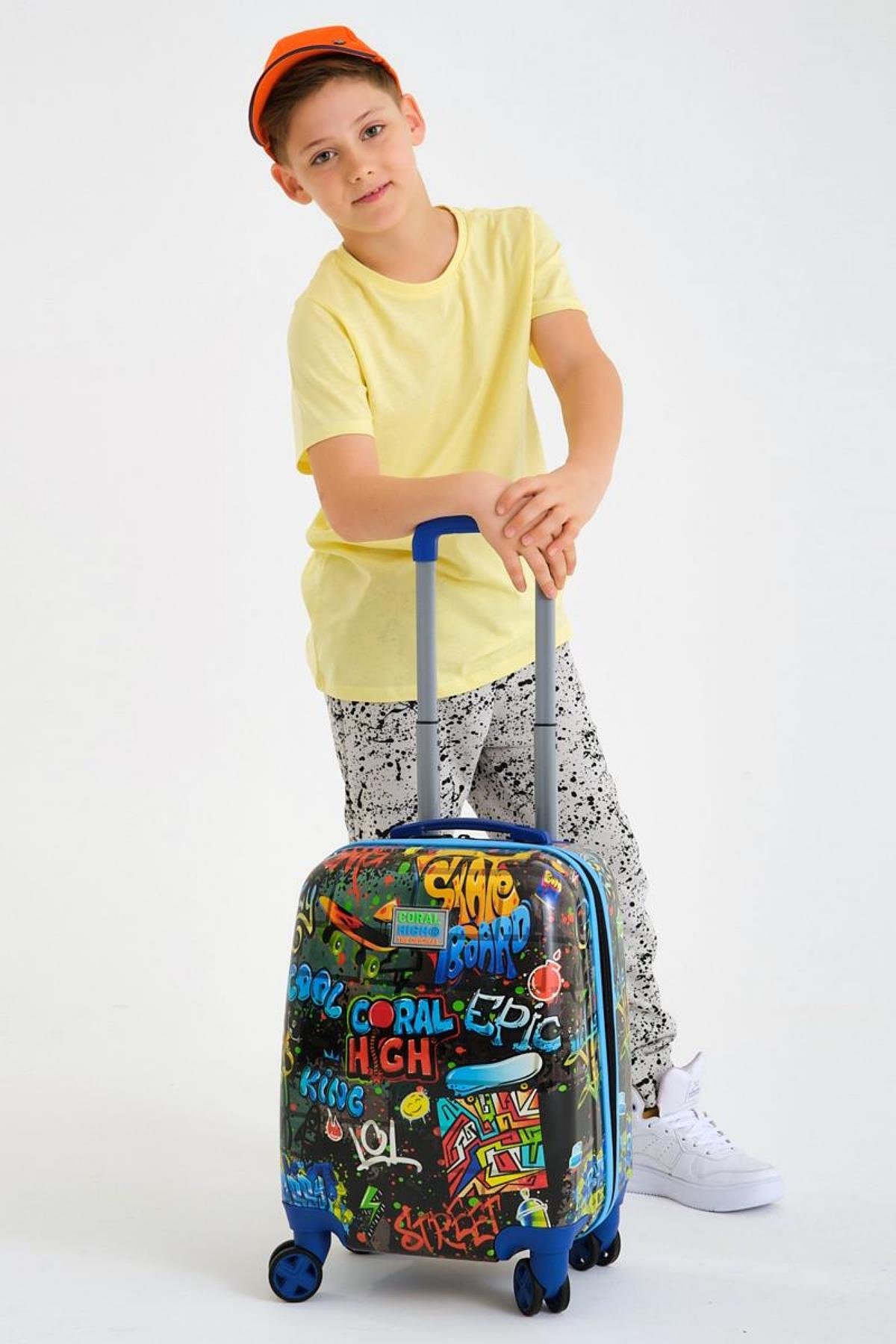 Elatae Policarbon Kırılmaz Çocuk Valizi Siyah Mavi Grafiti Desenli (Elatae-Çocuk-Valiz-16760)