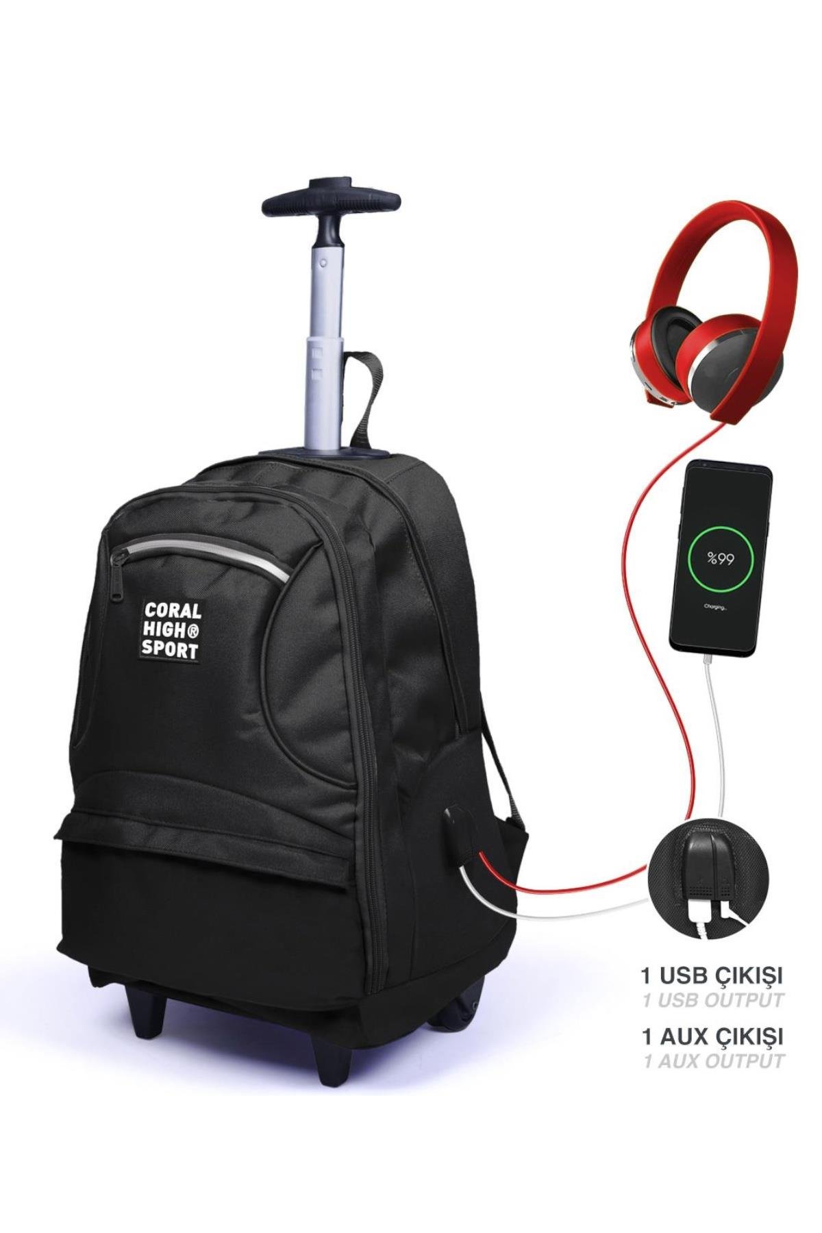 Dört bölmeli USB ve AUX Çıkışlı Çekçekli Sırt Çantası.
