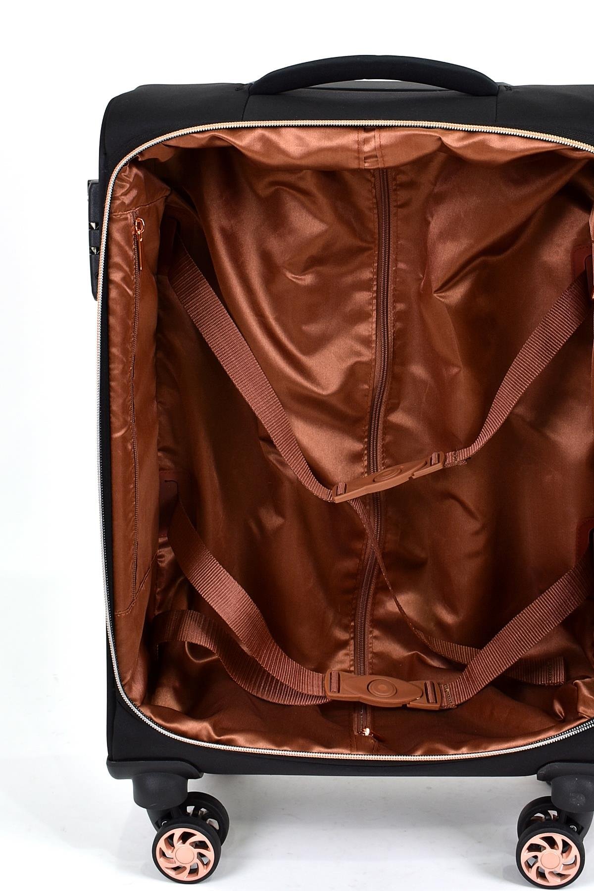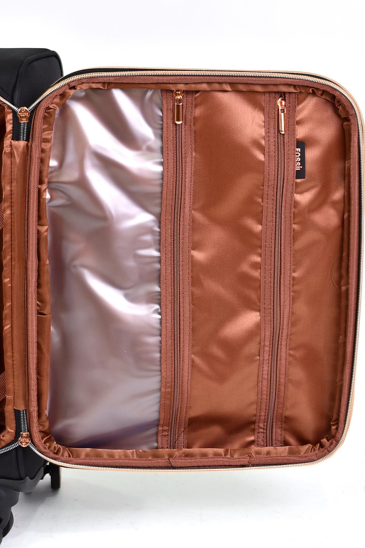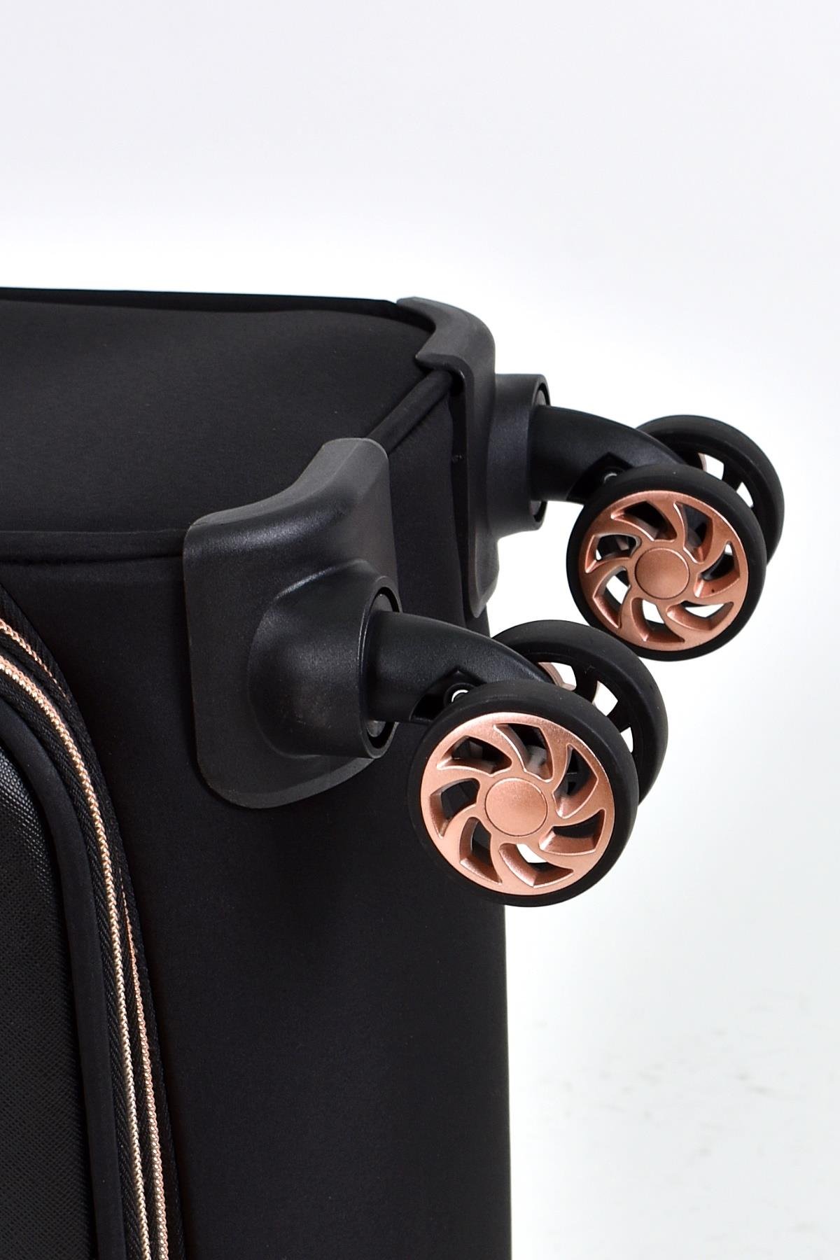 Büyük, zırhlı tekerlekler çift ve döndürülebilir. Kasanın yanında TSA ayarlanabilir şifreli bir kilit bulacaksınız. Zarif iç mekan, giysileri tutmak için kayışlar. Tekerleklerin model ve renkleri kaliteden ödün verilmeden değişiklik gösterebilir.