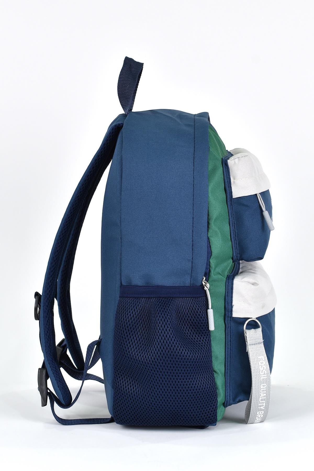 Çantanın yan kısımlarında 2 adet esnek malzemeden suluk ve aksesuar cebi bulunmaktadır.
